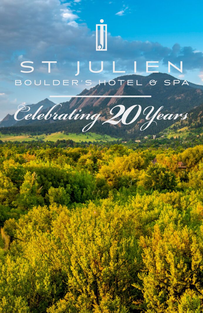Join us in celebrating two decades of excellence at St Julien Hotel & Spa. Since opening in March of 2005, St Julien has been a premier destination in Boulder, Colorado, renowned for its refined hospitality, luxurious accommodations, and award-winning spa. For twenty years, we have remained committed to providing unparalleled service, exceptional experiences, and a serene retreat against the backdrop of the breathtaking Flatirons. We extend our heartfelt gratitude to our guests and community for their continued support and look forward to welcoming you as we embark on the next chapter of our legacy.